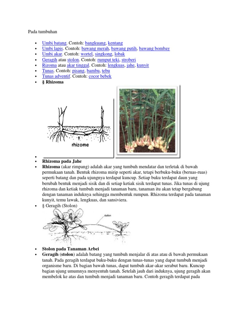 Contoh tumbuhan yang berkembangbiak dengan cara ini adalah. Rhizoma adalah jenis batang tanaman yang terletak di permukaan tanah atau bawah tanah yang mengandung simpul simpul tempat akar dan pucuknya berasal ditunjukkan di bawah. Suku temu temuan zingiberaceae dan paku pakuan pteridophyta merupakan contoh yang biasa dipakai untuk kelompok tumbuhan yang. Batang batang beruas ruas dan disetiap ruas dapat tumbuh tunas.
