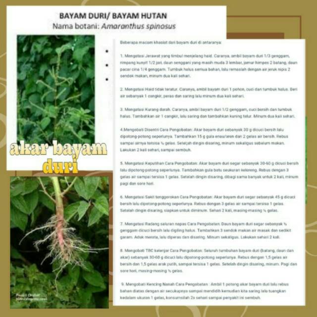 Pohon mangga dapat mencapai usia hingga 100 tahun lebih. Anda pasti sudah lebih dahulu mengenal bayam duri. Akar bayam duri segar sebanyak 30 g dicuci bersih lalu dipotong potong seperlunya. Rebus sampai airnya tersisa gelas.