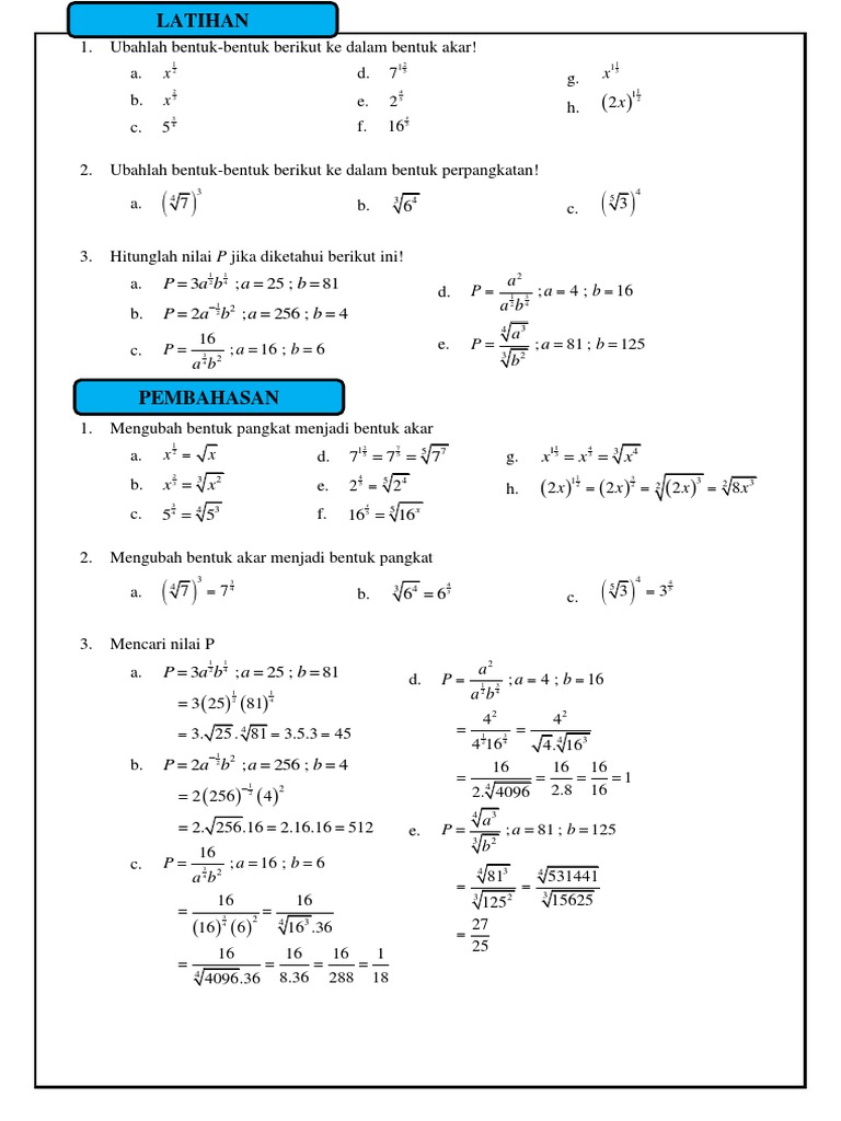 Cara untuk merasionalkan penyebut pecahan yaitu dengan mengalikan pembilang dan penyebut pecahan tersebut dengan bentuk akar yang sekawan dari penyebut tersebut. Bilangan pangkat biasa yang dapat riubah kedalam bentuk bilangan pangkat pecahan bilangan pangkat pecahan pun juga bisa diubah menjadi bentuk bilangan pangkat akar yaitu dengan menggunakan rumus rumus sebagai berikut. Kumpulan soal mudah sedang sukar. Pembilang pada pangkat pecahan merupakan pangkat dari bilangan yang diakarkan sedangkan penyebut pada pangkat pecahan merupakan nilai pangkat akar.